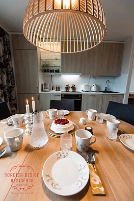 Nordica Design Residence RovaniemiThe apartment was located in newly built building right in the center of Rovaniemi. Everything was spotlessly clean and new. Apartment is decorated with Finnish design items. It is extremely well equipped and would suit well for a longer stay, too. Location is excellent for exploring the city. Many good restaurants, cafes and shops are located right next door. Note that there is a building site right next to the building, so some noise and other disturbances may occur.